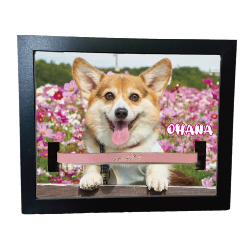 愛用していた首輪を一緒に飾れる穴あけ加工済みフォトフレームです。