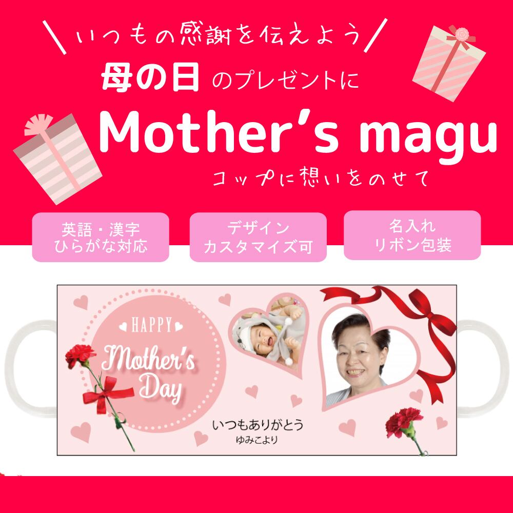 照れくさくて言葉にしにくい感謝の気持ちを形にできる、母の日にぴったりの マグカップ です。