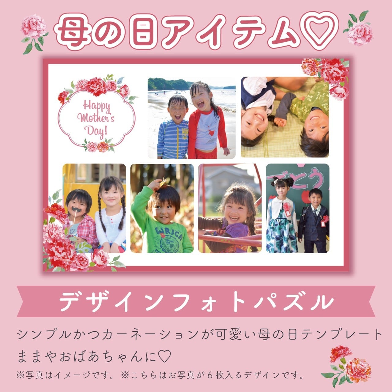 LINEで簡単【名入れ 写真 母の日デザイン テンプレート 120ピースフォトパズル】